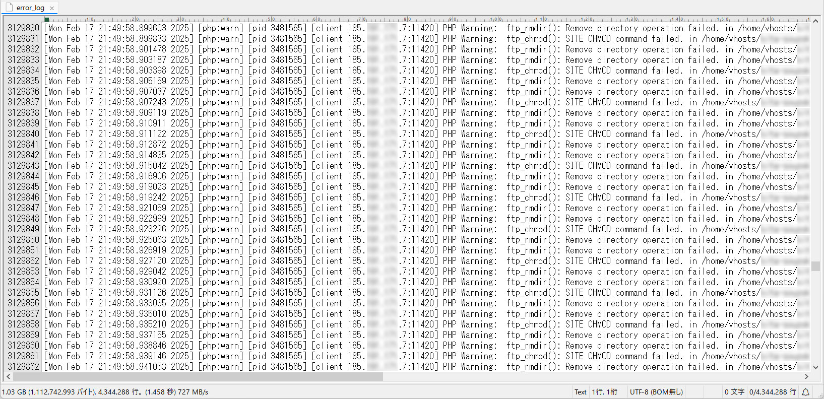 たまたまブログのサーバのエラーログを見たら不審なエラーログが大量に記録されていました。