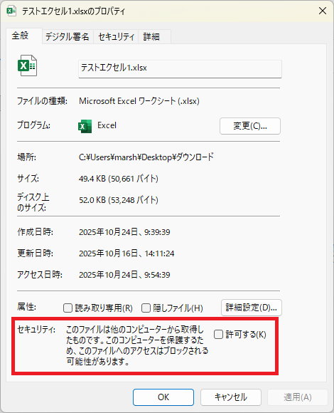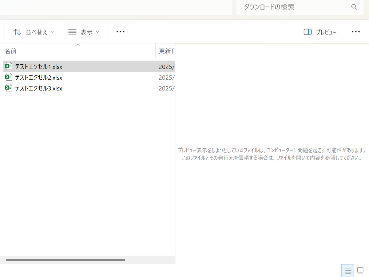 ネットからダウンロードしたExcelファイルなどのプレビューができなくなりました。